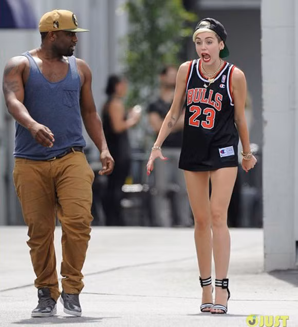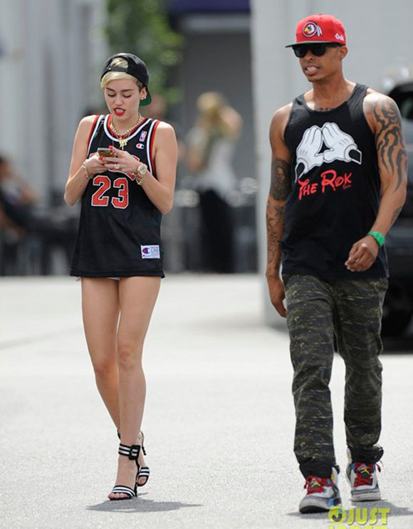 Với trang phục nổi bật, Miley đã ngay lập tức thu hút mọi sự chú ý ở xung quanh, Miley tỏ ra rất thoải mái khi cười đùa ‘thả phanh’ với bạn khi đi trên đường.