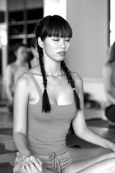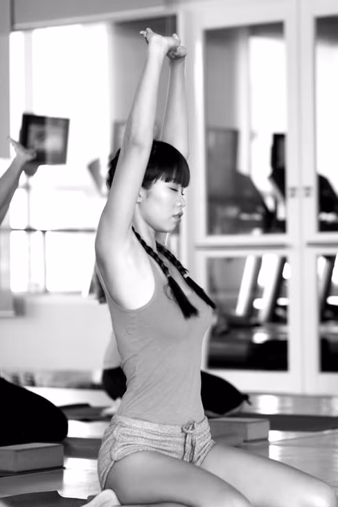 | Hà Anh rất nghiêm túc khi thực hiện các động tác yoga. |