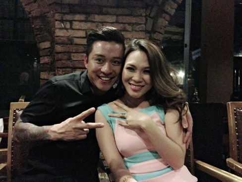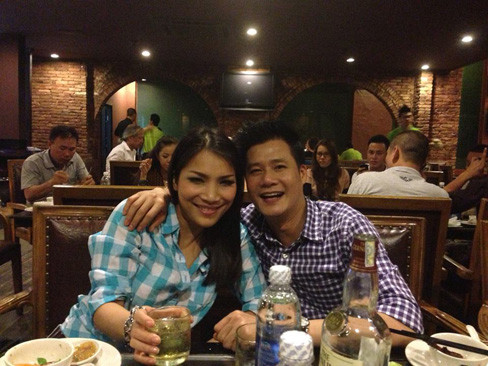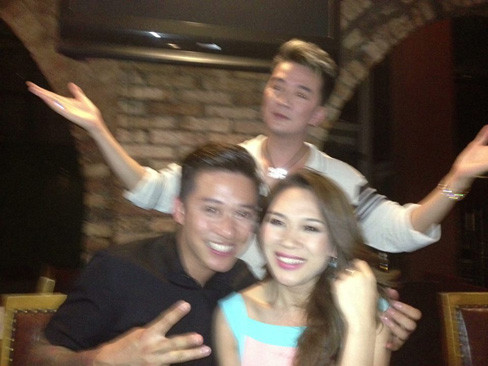 | Tuấn Hưng và Mỹ Tâm chụp ảnh rất thân mật và tình cảm. |