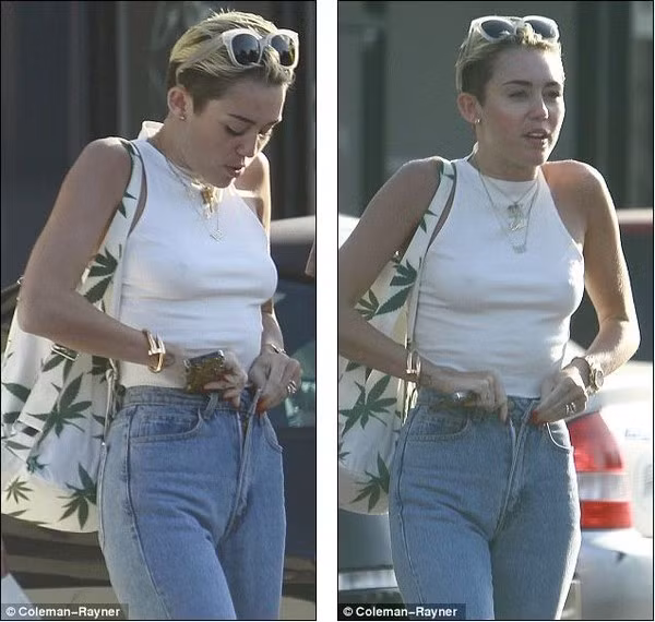 Mới đây, nữ ca sĩ đình đám Miley Cyrus đã bị các tay săn ảnh ‘chộp’ được hình ảnh diện trang phục không nội y thả rông vòng một và thản nhiên cài lại khóa quần bị tuôt khi đang đi cùng bạn trên đường phố Los Angeles, Mỹ.