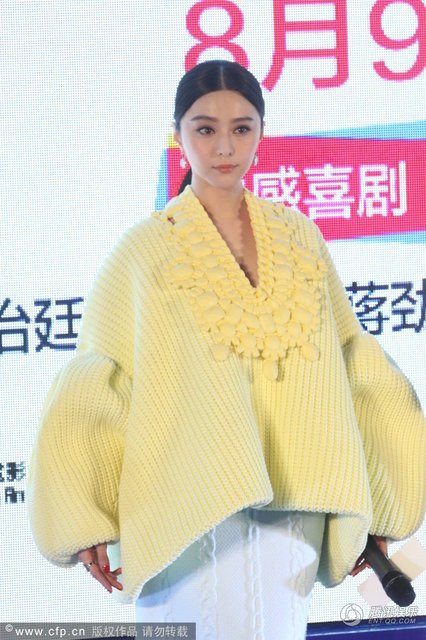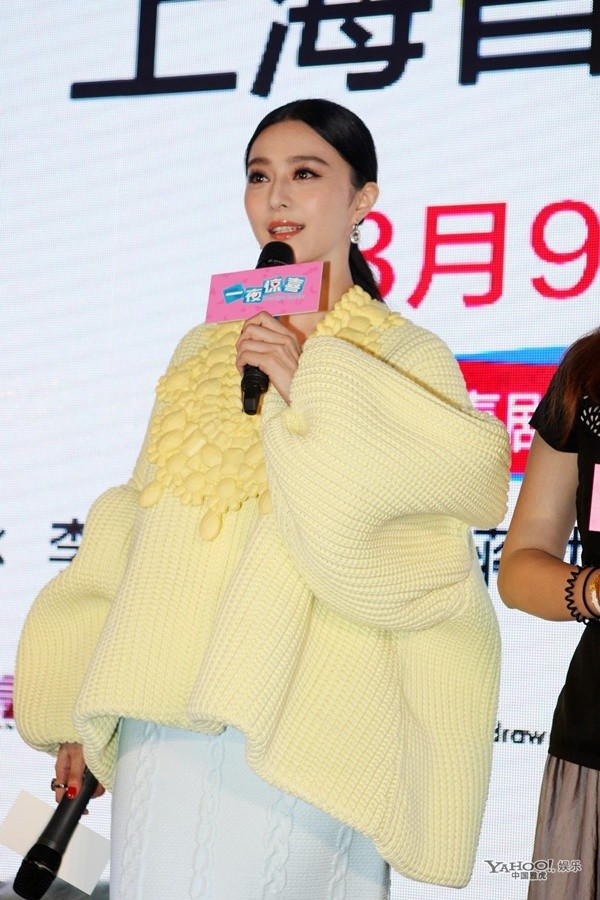 Vừa qua, xuất hiện tại buổi ra mắt bộ phim mới tại Thượng Hải, Phạm Băng Băng đã khiến người đối diện choáng váng khi khoác lên mình một chiếc áo len màu vàng to sụ .