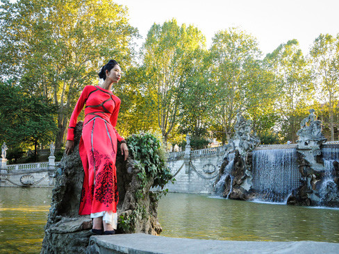 Phòng khánh tiết của lâu đài Valentin Borge chật cứng người, những bộ áo dài truyền thống Việt Nam và những bộ sưu tập của các nhà thiết kế Công Khanh, Trọng Nguyên, Minh Hạnh được lần lượt trình diễn với dàn người mẫu chuyên nghiệp từ Việt Nam sang như hoa hậu Ngọc Hân, hoa hậu biển Lâm Thu Hằng, các người mẫu từ Thành phố Hồ Chí Minh và Hà Nội như Kha Mỹ Vân, Phương Liên, Thanh Tú, Duy Hưng...
