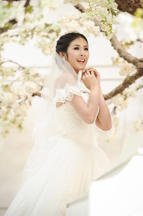Những cô gái trong ngày trọng đại vốn đã toát ra một vẻ đẹp rạng rỡ của sự hạnh phúc, nên những mẫu thiết kế của Ngọc Hân rất đơn giản nhẹ nhàng, và cũng không cần kết hợp với những trang sức cầu kì mà vẫn làm nổi bật được vẻ đẹp của cô dâu.