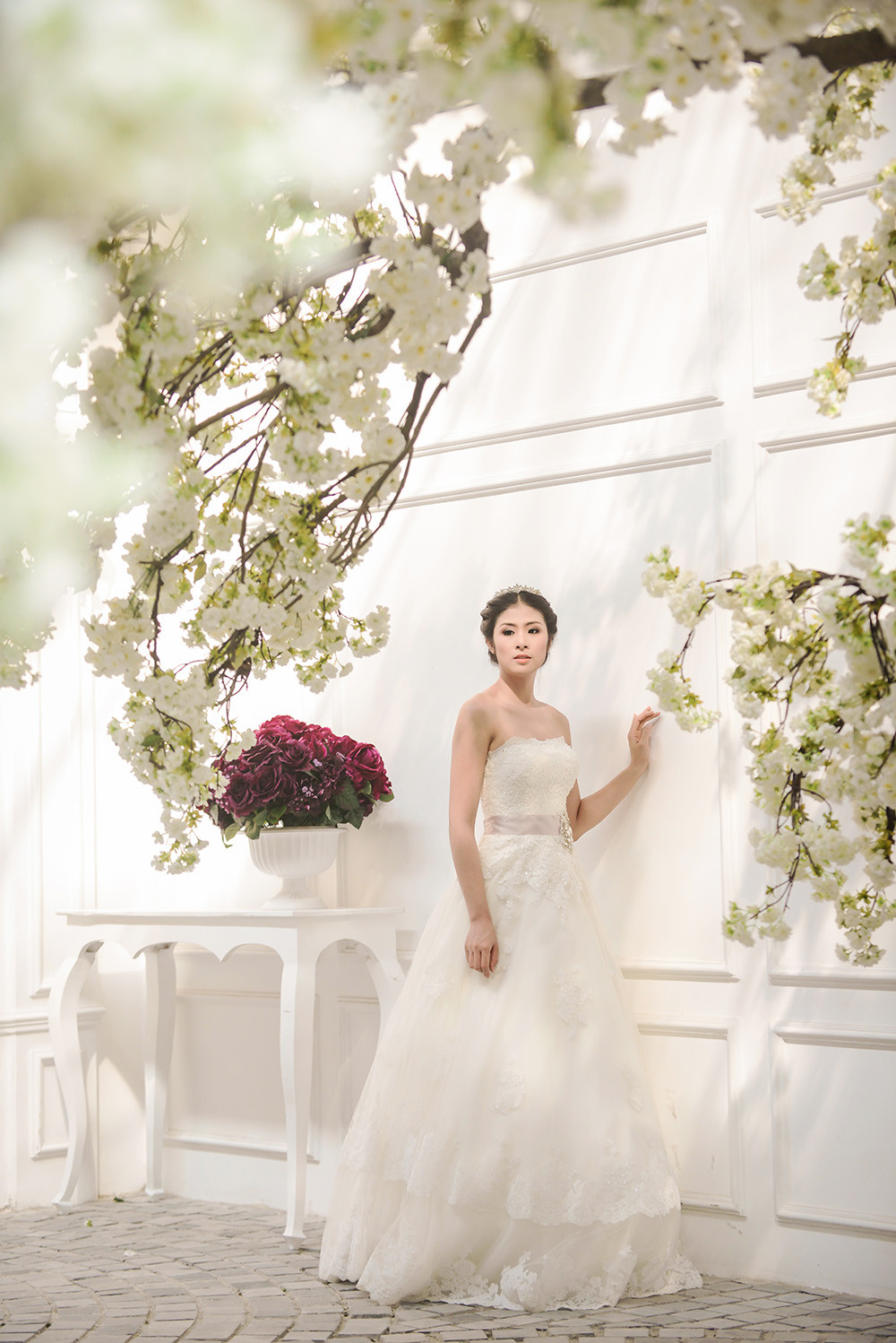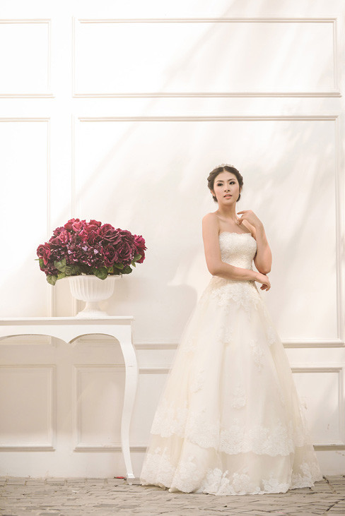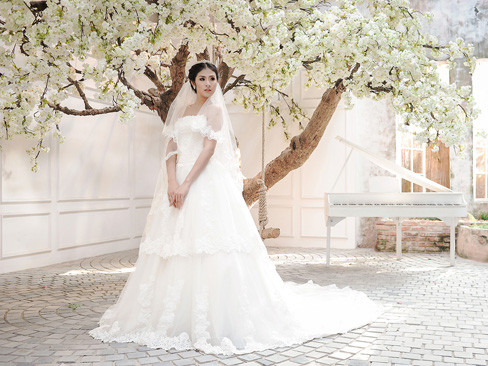 Trong mùa thu năm nay, lấy cảm hứng từ những cánh hồng trắng mong manh yêu kiều, cô đã thiết kế những mẫu váy cưới tinh khôi dành cho các cô dâu xinh đẹp.
