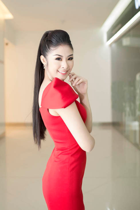 Chiếc váy với phần cách điệu ở cầu vai mang lại nét yêu kiều, sang trọng và gợi cảm vừa đủ cho người mặc. Có thể nói Ngọc Hân đang ngày càng 'ghi điểm' trong mắt công chúng với phong cách thời trang sang trọng, tinh tế của mình.