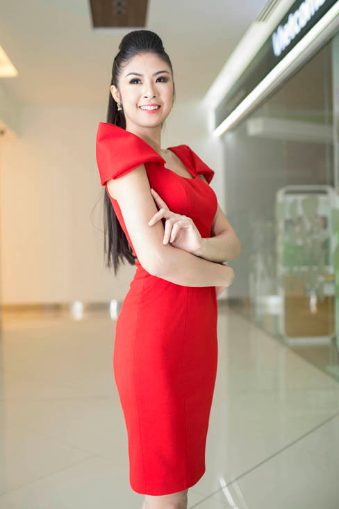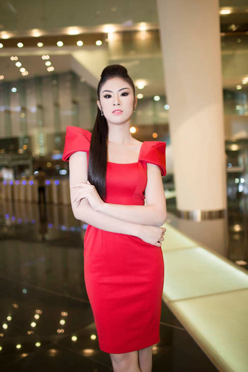 Vốn là nhà thiết kế nên Ngọc Hân cũng rất đầu tư cho hình ảnh của mình khi làm MC cho chương trình về thời trang. Tối qua, cô chọn bộ đầm đỏ rực với thiết kế tối giản của nhà thiết kế Tăng Thành Công - một trong những thí sinh của chương trình.
