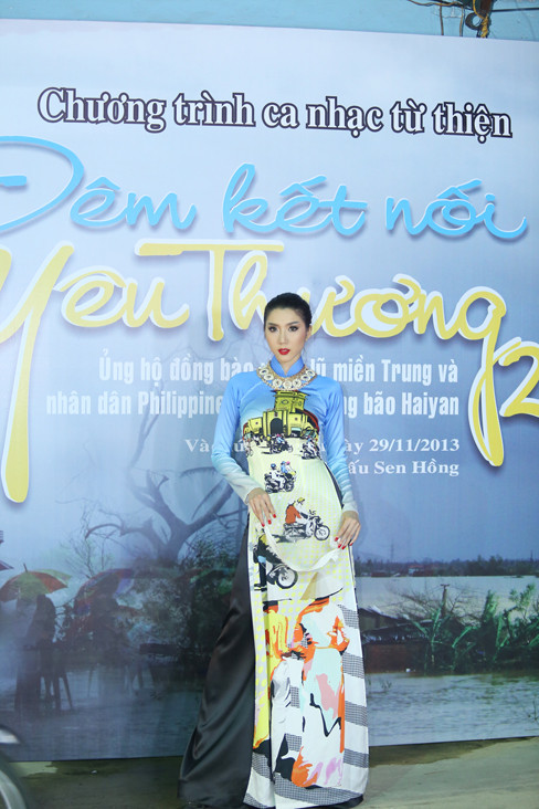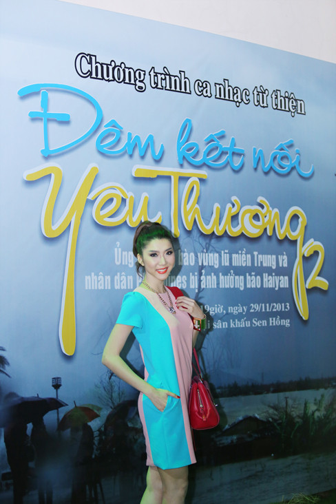 Tối 29/11, Ngọc Quyên nhận lời mời của MC Thanh Bạch tới tham dự chương trình nhạc hội 'Kết nối yêu thương' diễn ra tại TP. HCM để kêu gọi ủng hộ người dân Philippines đang phải gánh chịu những hậu quả vô cùng nặng nề của siêu bão Haiyan hồi giữa tháng 11.