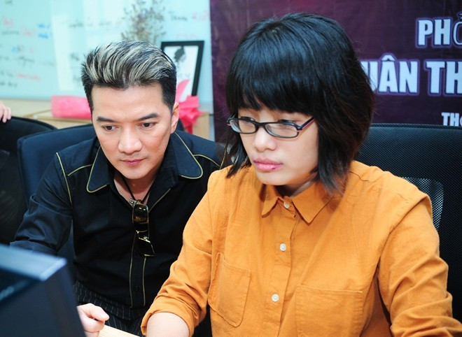 | Hai thày trò Mr Đàm - Thảo My trong buổi giao lưu. |