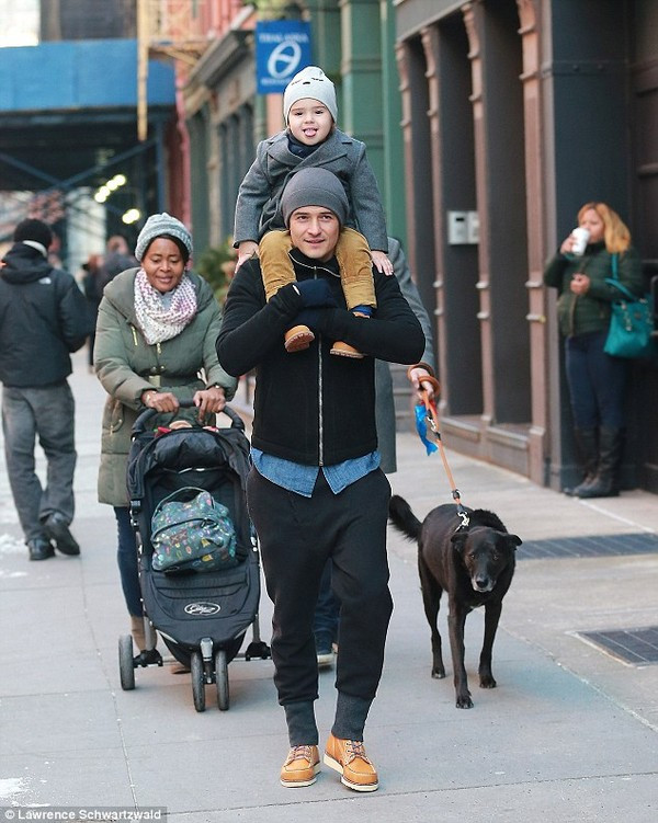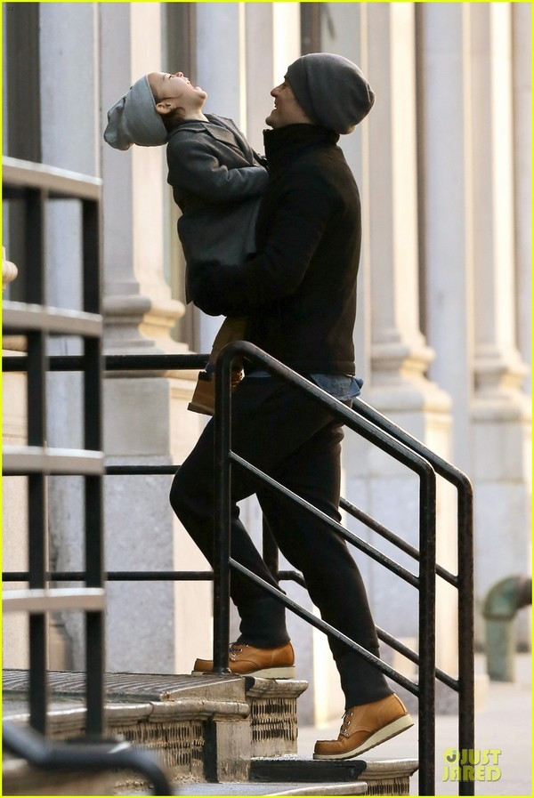 Bị các phóng viên ảnh bắt gặp với hình ảnh quen thuộc khi đưa con trai đi chơi, nam diễn viên 36 tuổi đã cõng bé Flynn trên lưng suốt một đoạn đường tới Hom Bom Toys ở New York . Cậu bé Flynn tỏ ra khá thích thú và nghịch ngợm với hành động lẽ lưỡi đáng yêu mặc dù không có mẹ Miranda ở bên cạnh.