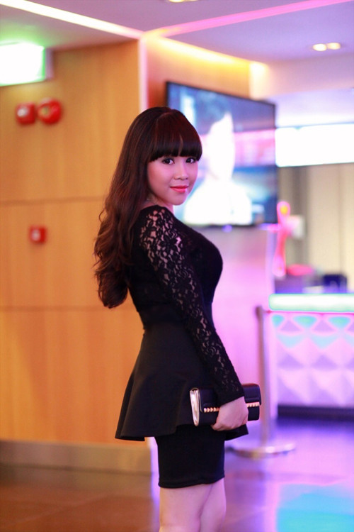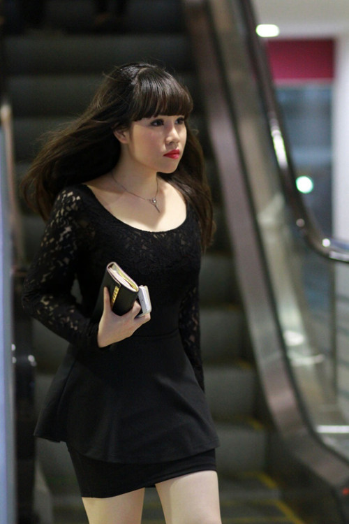 Với tóc mái ngố trẻ trung, trang phục đen bó sát, "bà Tưng" phiên bản truyền hình gần như đã lột xác. Cô cũng ngày càng tự tin và chuyên nghiệp khi tạo dáng trước ống kính các phóng viên.
