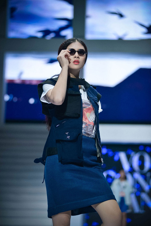 Để phù hợp với ý nghĩa của bộ sưu tập, các người mẫu đều để kiểu tóc xoăn dập và đeo kính đen đầy cá tính trên sàn diễn. Hoa hậu Ngọc Hân và Á hậu Hoàng Anh cũng 'rũ bỏ' hoàn toàn vẻ kiêu sa, gợi cảm trong đêm diễn mở màn để trở nên hầm hố, bụi bặm hơn.