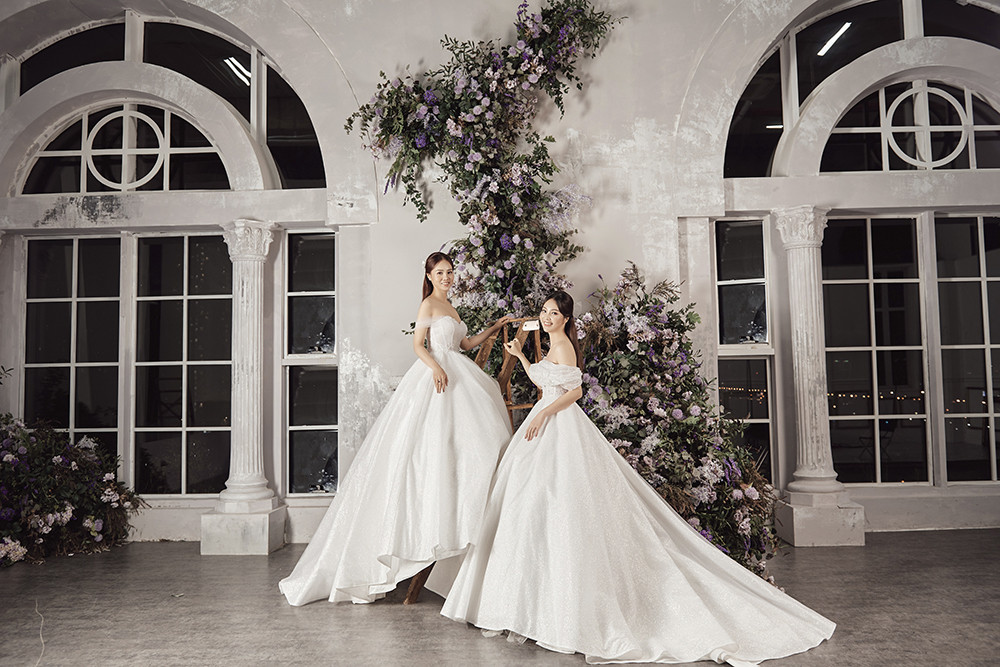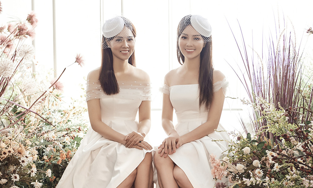 Trước những lời khen ngợi này, Ngọc Hà – Thuỵ Vân quyết định chụp chung bộ ảnh “Chị chị, em em”. Cả hai cùng nhau khoe sắc trong váy cưới.