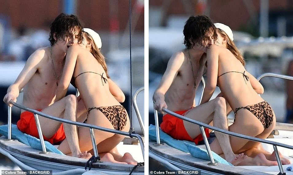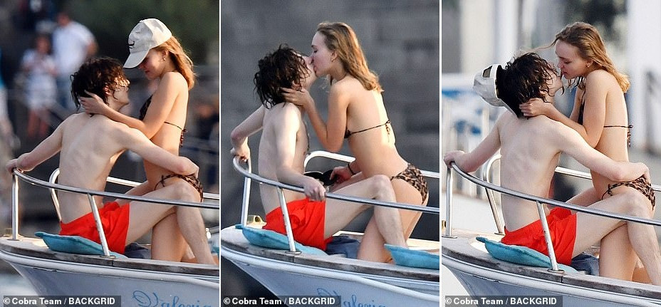 Trong chuyến đi, Lily-Rose mặc bikini hai mảnh hoạ tiết da báo, còn Timothee mặc quần bơi màu cam. Cặp đôi hôn nhau đắm đuối tưởng chừng không thể tách rời ở chốn đông người.