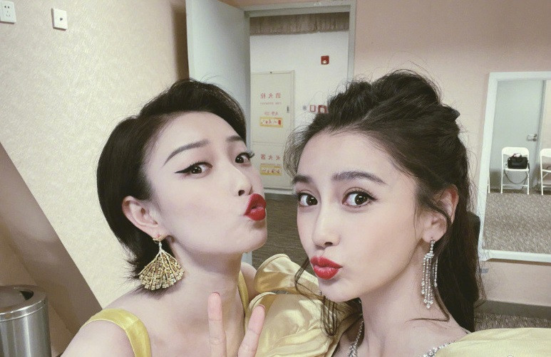 Angelababy thân thiết với đồng nghiệp trong cánh gà.