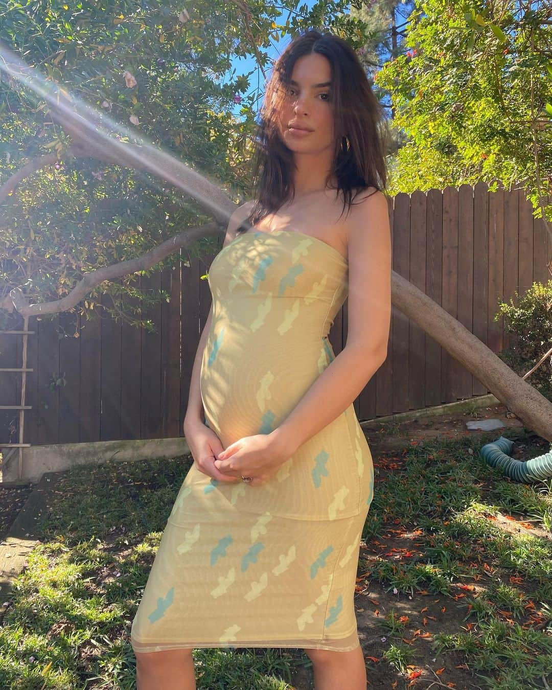Dù đang mang bầu nhưng Emily vẫn sở hữu những đường cong nuột nà thon gọn.