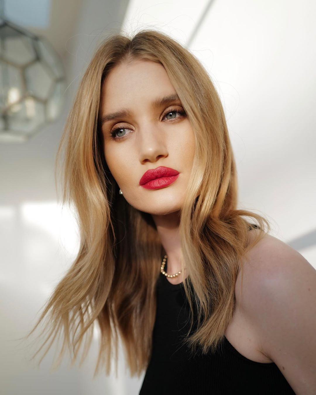 Siêu mẫu xứ sương mù trang điểm rực rỡ với son môi đỏ mọng, mắt mơ màng trong loạt ảnh do chính bạn trai Jason Statham bấm máy.