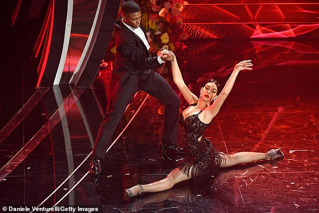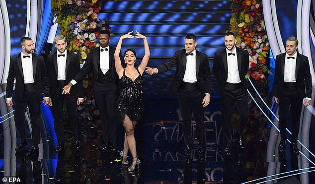 Mỹ nhân 26 tuổi xinh đẹp gợi cảm hút hồn với vai trò người dẫn chương trình lễ trao giải Sanremo diễn ra ở Ý vào tối qua.