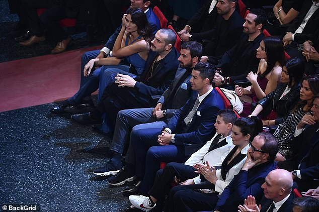 Ronaldo chăm chú ngắm bạn gái biểu diễn trên sân khấu.
