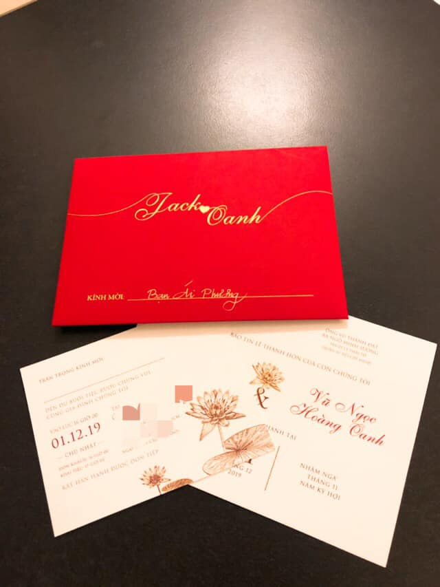 Cụ thể cô viết: "Chẳng lẽ mình dành cả thanh xuân đi ăn cưới. Vừa đi ăn đám cưới Đông Nhi - Ông Cao Thắng về mà". Theo thông tin trên thiệp, hôn lễ của Hoàng Oanh và bạn trai sẽ diễn ra vào ngày 1/12 tại TP.HCM.