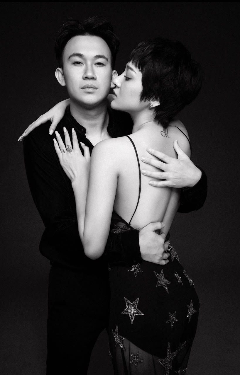 Với tone đen trắng chủ đạo, Dương Triệu Vũ - Bảo Anh có những cử chỉ thân mật, nồng nàn.
