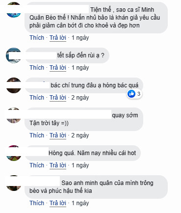Một số khán giả bình luận rằng: ““Sao ca sĩ Minh Quân béo thế. Nhắn nhủ bảo là khán giả yêu cầu giảm cân bớt đi cho khỏe và đẹp hơn", “Sao anh Minh Quân của mình trông béo và phúc hậu thế kia”, hay “Trả lại ca sĩ Minh Quân hồi ấy đây".
