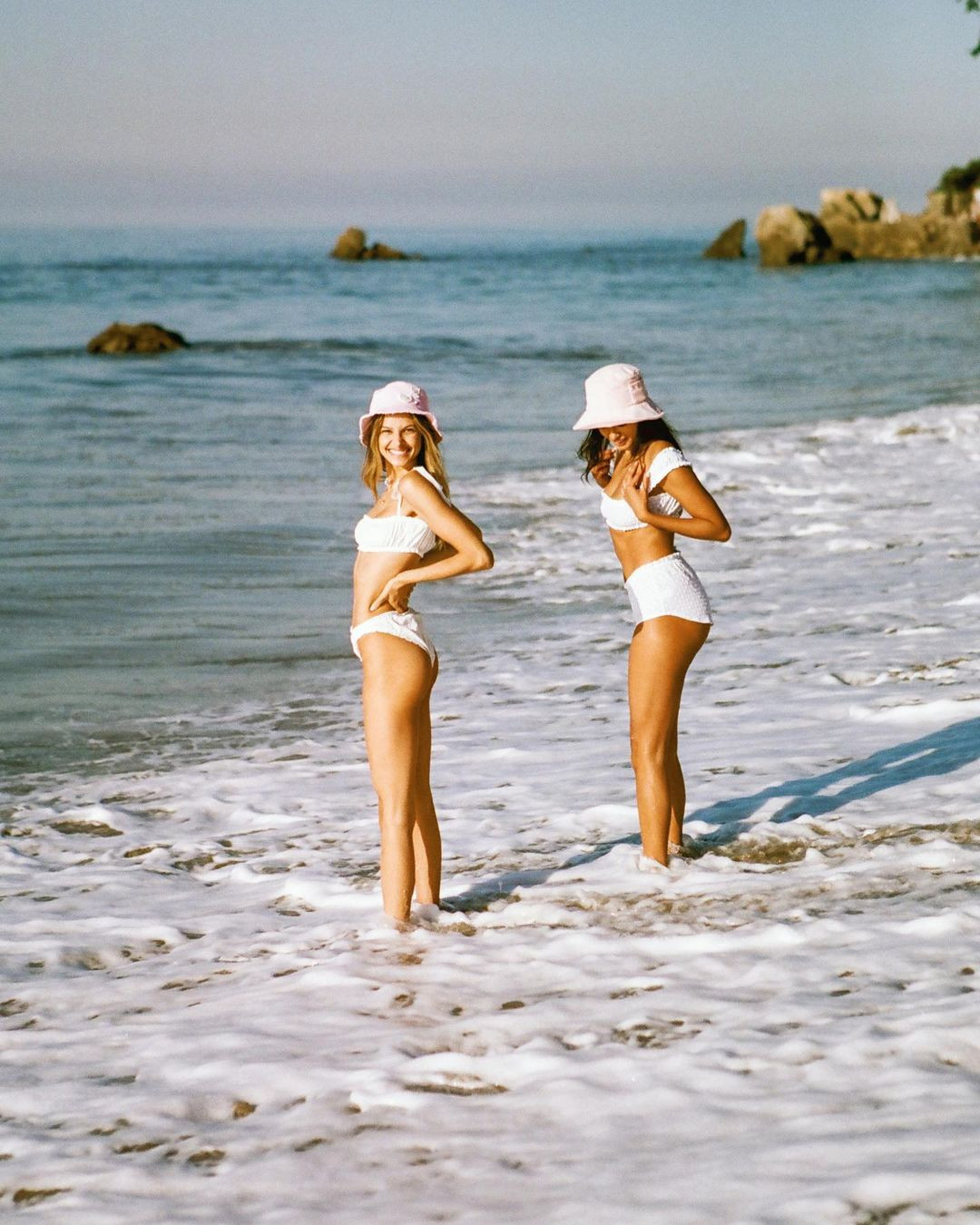 Hai người mẫu xứ Samba nổi bật rạng ngời trên biển.