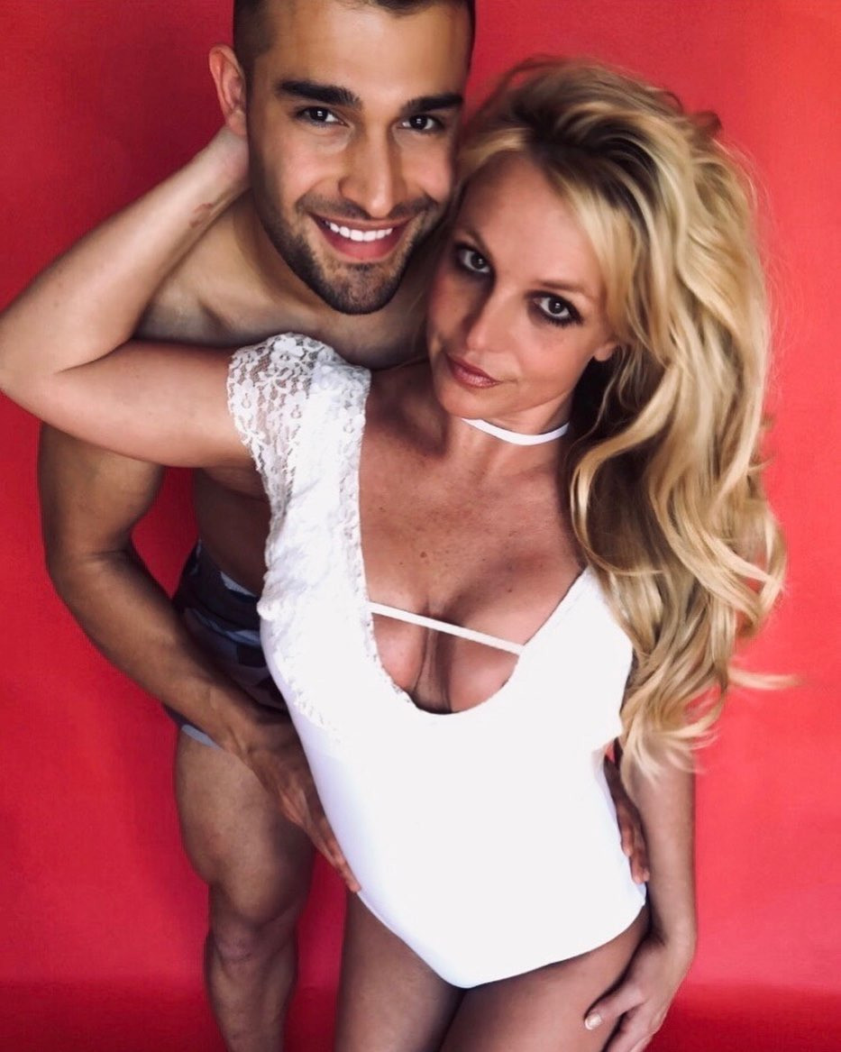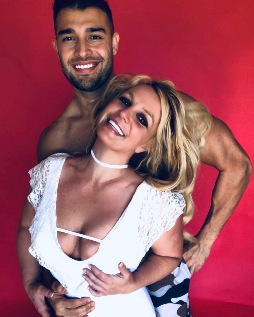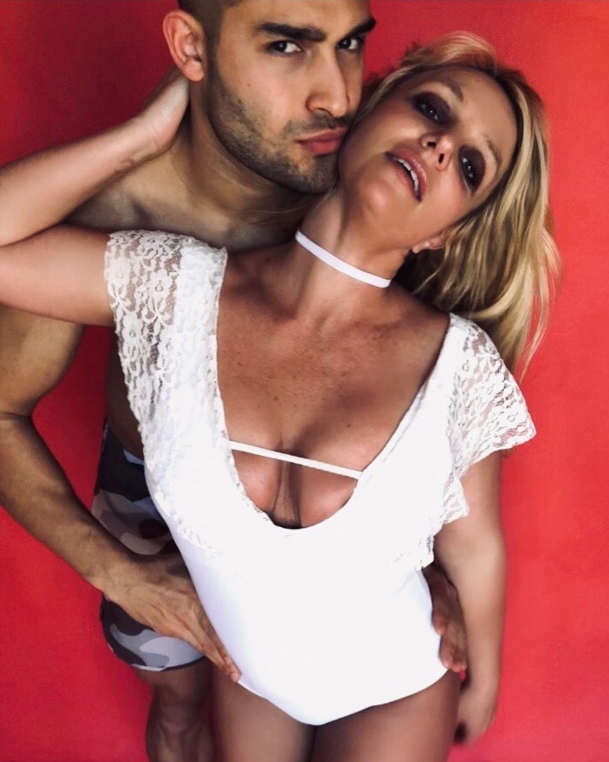 Trong loạt ảnh mới đăng trên trang cá nhân, Britney Spears mặc bộ bodysuit đan dây khoe "vòng 1" căng đầy sức sống và tình tứ bên bạn trai 26 tuổi Sam Asghari.