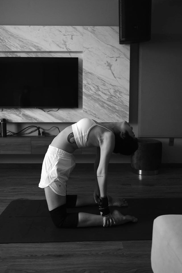 Bảo Anh tập yoga tại nhà cùng huấn luyện viên cá nhân. Video: Facebook NV