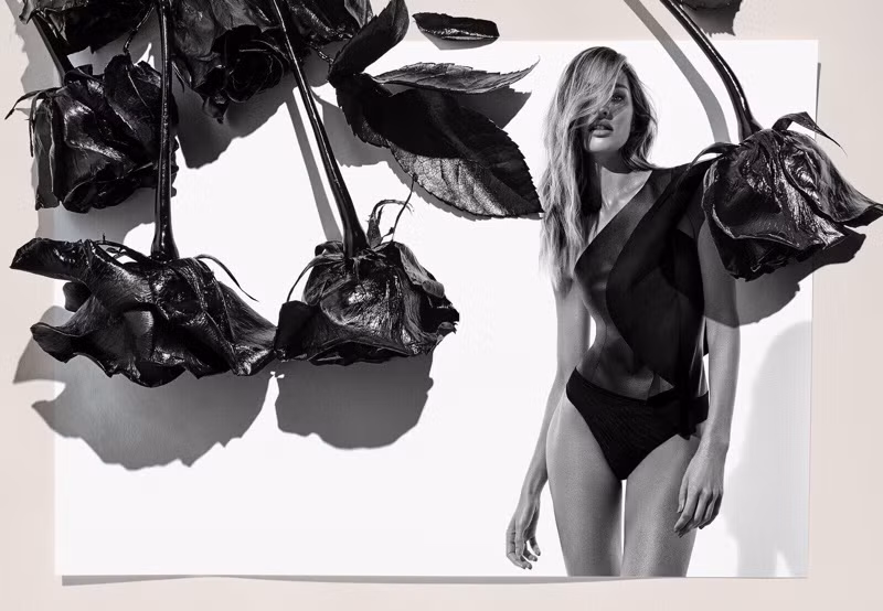 Diện những trang phục bằng da của chiến dịch thời trang Animale, nàng thiên thần nội y trông đầy bí ẩn và quyền lực.