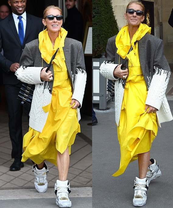Trước đó, nữ ca sĩ "My heart will go on" mặc đồ luộm thuộm như vừa bước xuống từ giường ngủ.