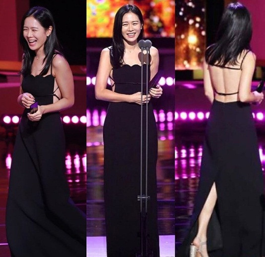Hoa hậu Hàn Quốc Lee Bo Young nhận giải Nữ diễn viên xuất sắc nhất. Hiện người đẹp 39 tuổi đang mang bầu con thứ 2.