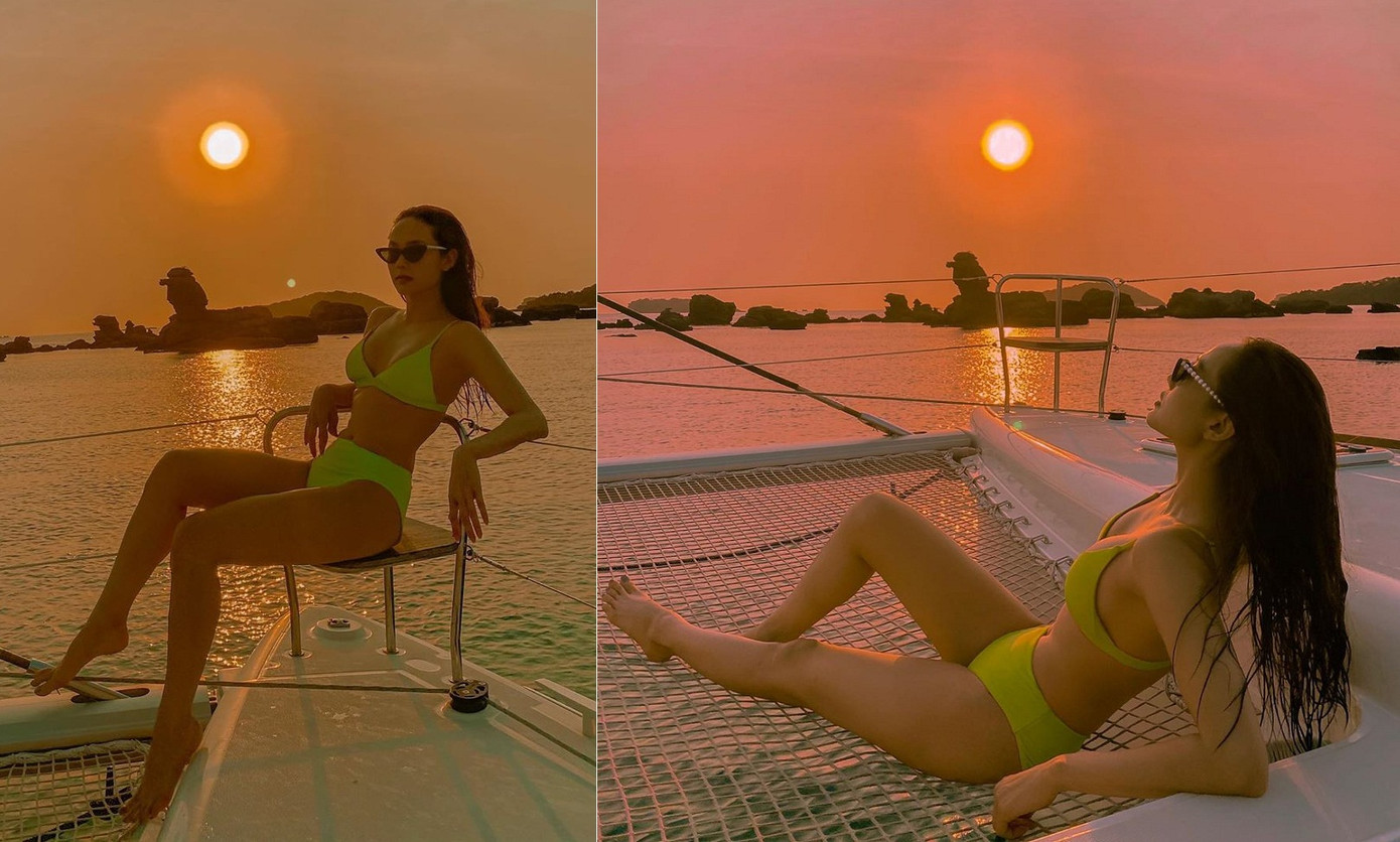 Minh Hằng cũng chọn Phú Quốc là điểm đến "trốn dịch". Bức ảnh mặc bikini ngắm hoàng hôn khiến nhiều fans phải trầm trồ.