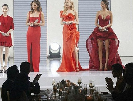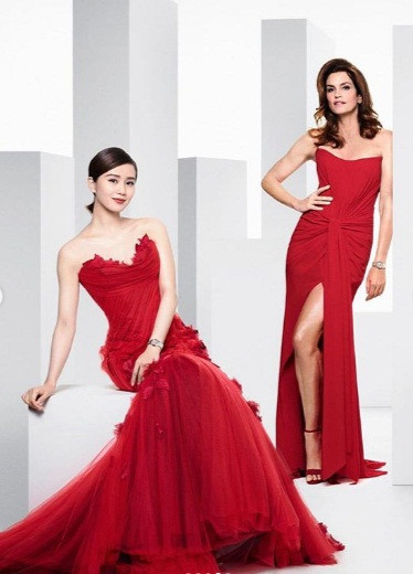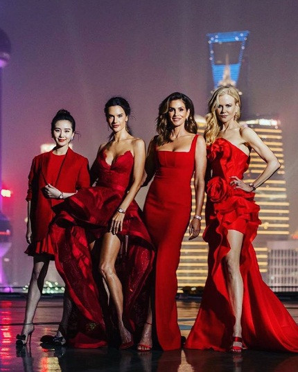 Cindy, Nicole và Alessandra và nữ diễn viên Lưu Thi Thi cùng diện đầm đỏ rực rỡ.
