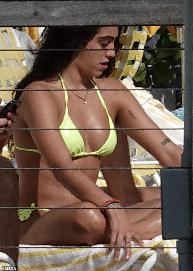 Người mẫu Lourdes Leon diện bộ bikini màu xanh chuối tận hưởng kỳ nghỉ ở Miami.
