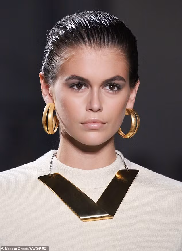 Siêu mẫu 18 tuổi Kaia Gerber - con gái mỹ nhân huyền thoại Cindy Crawford tối qua cũng tham gia trình diễn trong show.