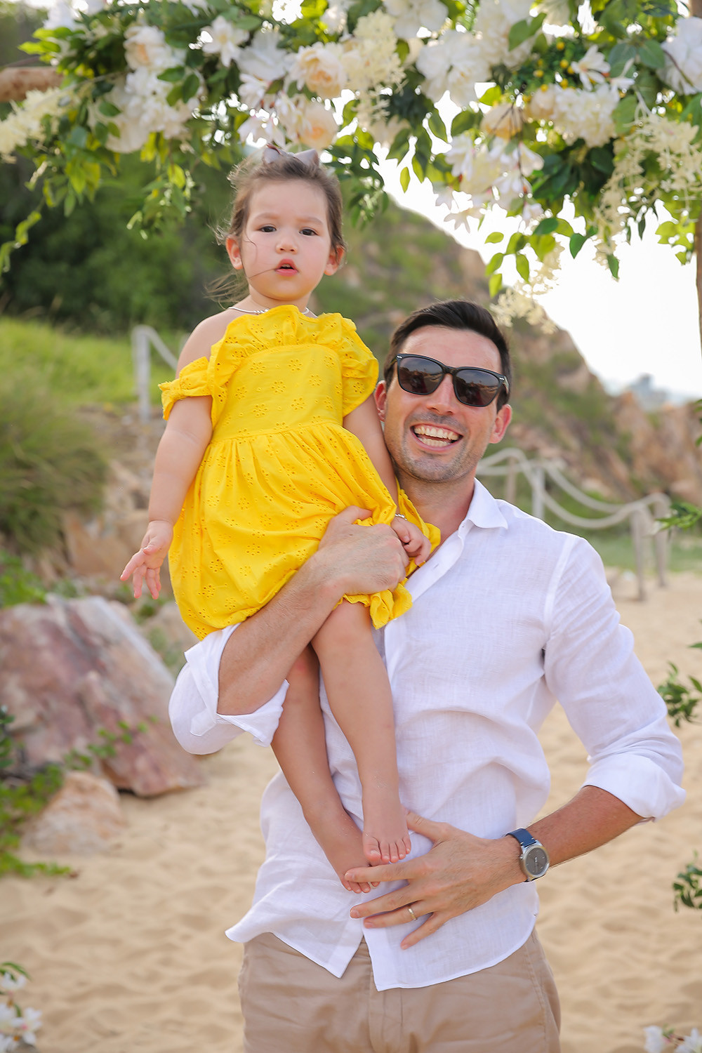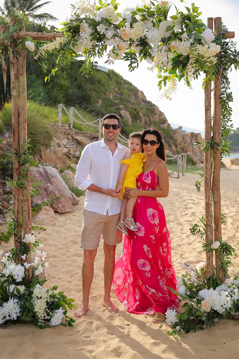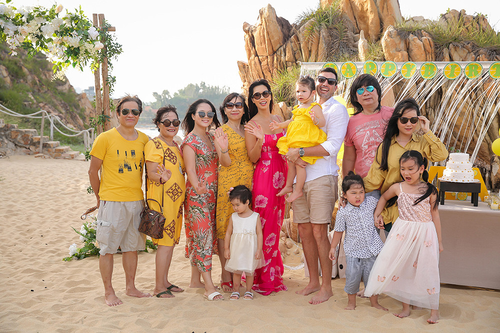 Năm ngoái, cặp đôi từng mời gia đình, bạn bè đi nghỉ dưỡng tại Đà Nẵng - địa điểm cả hai từng tổ chức tiệc cưới để làm tiệc mừng Myla 1 tuổi.