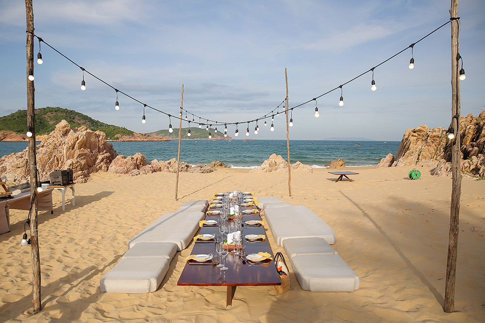 Hà Anh đã lựa chọn không gian riêng biệt nằm giữa các rặng đá tự nhiên nổi trên mặt nước, hoang sơ, tuyệt đẹp để tổ chức tiệc sinh nhật cho con gái với thực đơn BBQ do chính cô làm việc với đội ngũ đầu bếp.