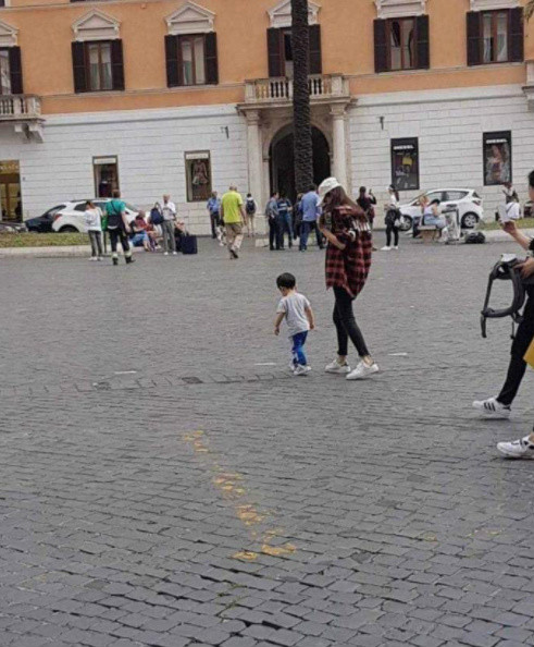 Cách đây ít ngày, người hâm mộ chụp được cảnh Angelababy và con trai Bọt Biển Nhỏ dạo chơi ở đường phố Rome nước Ý.