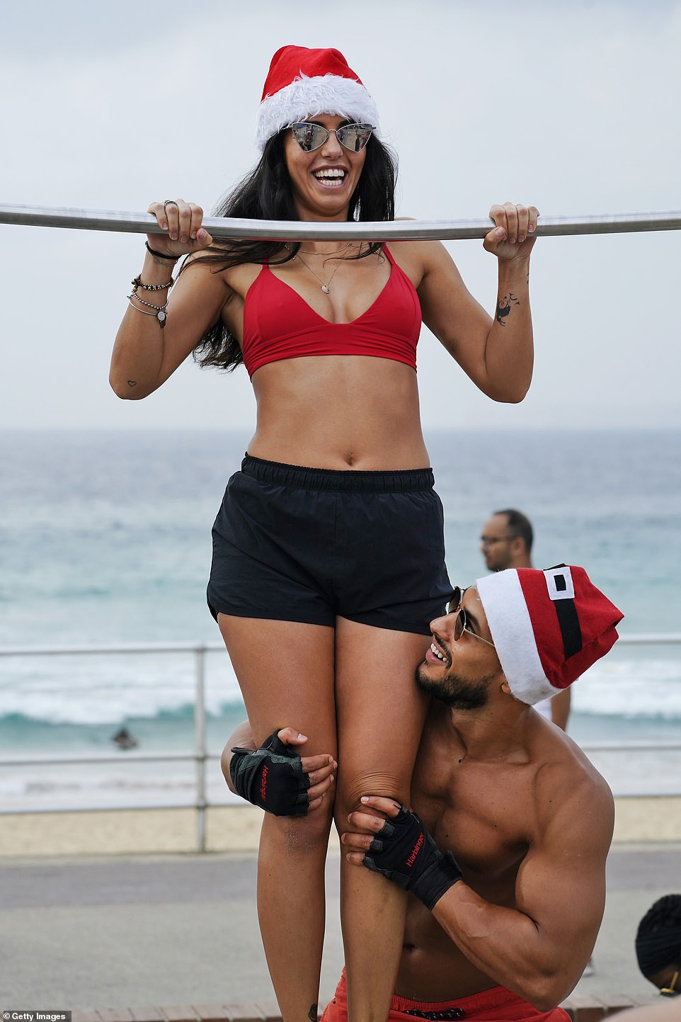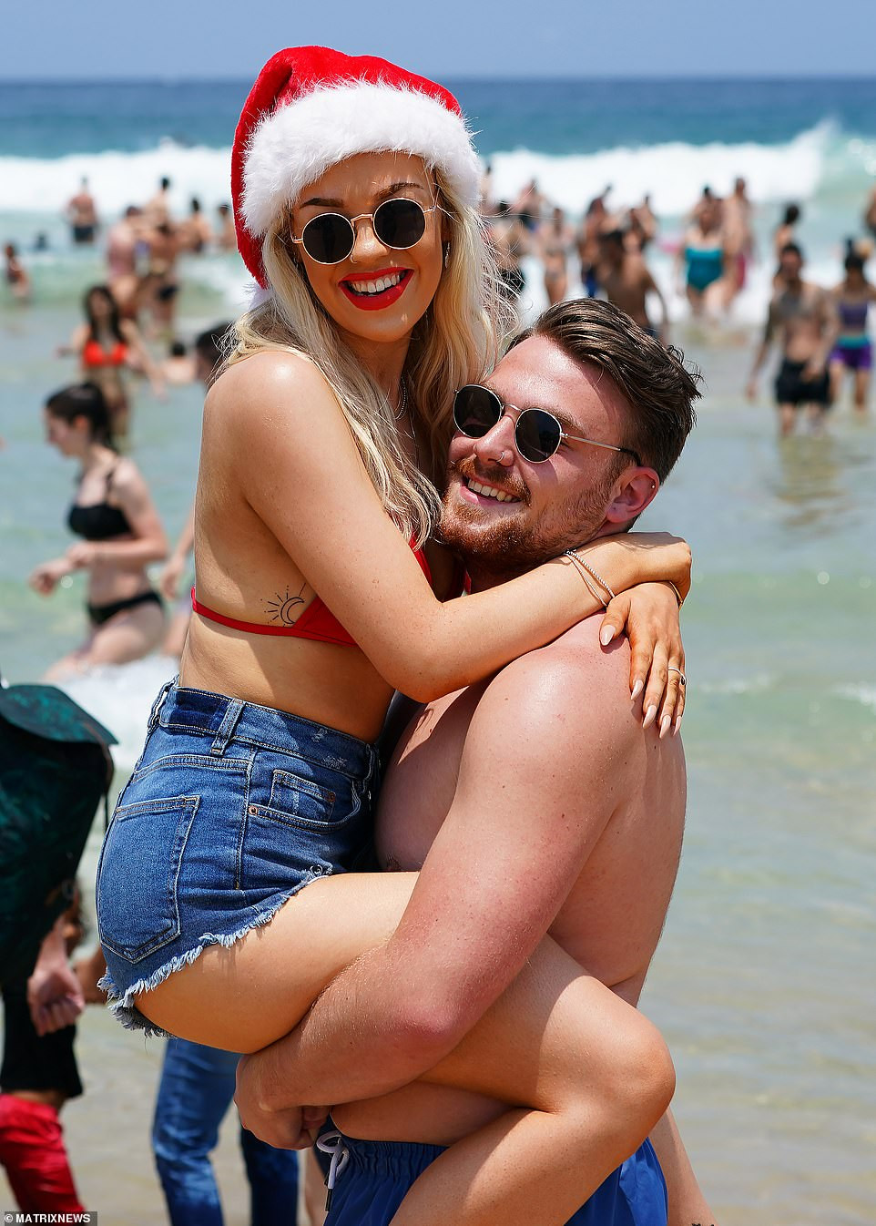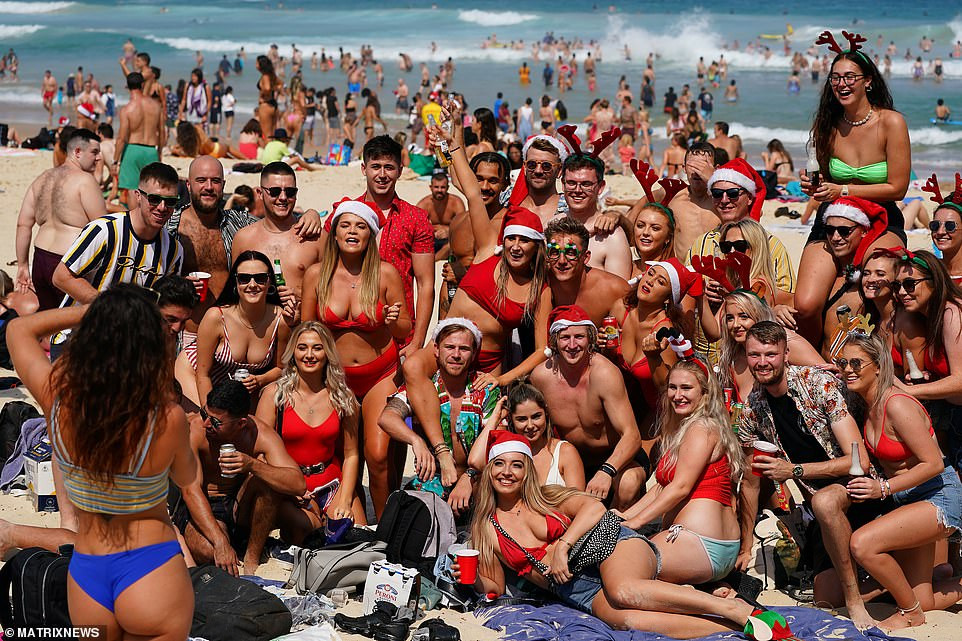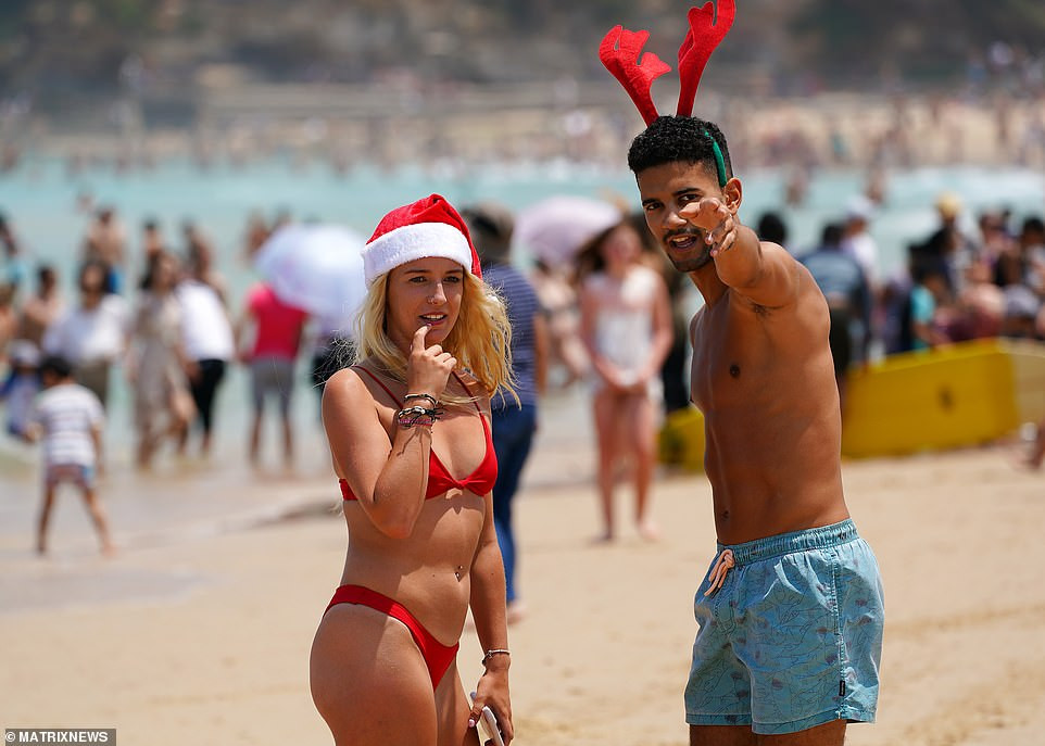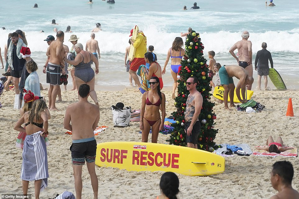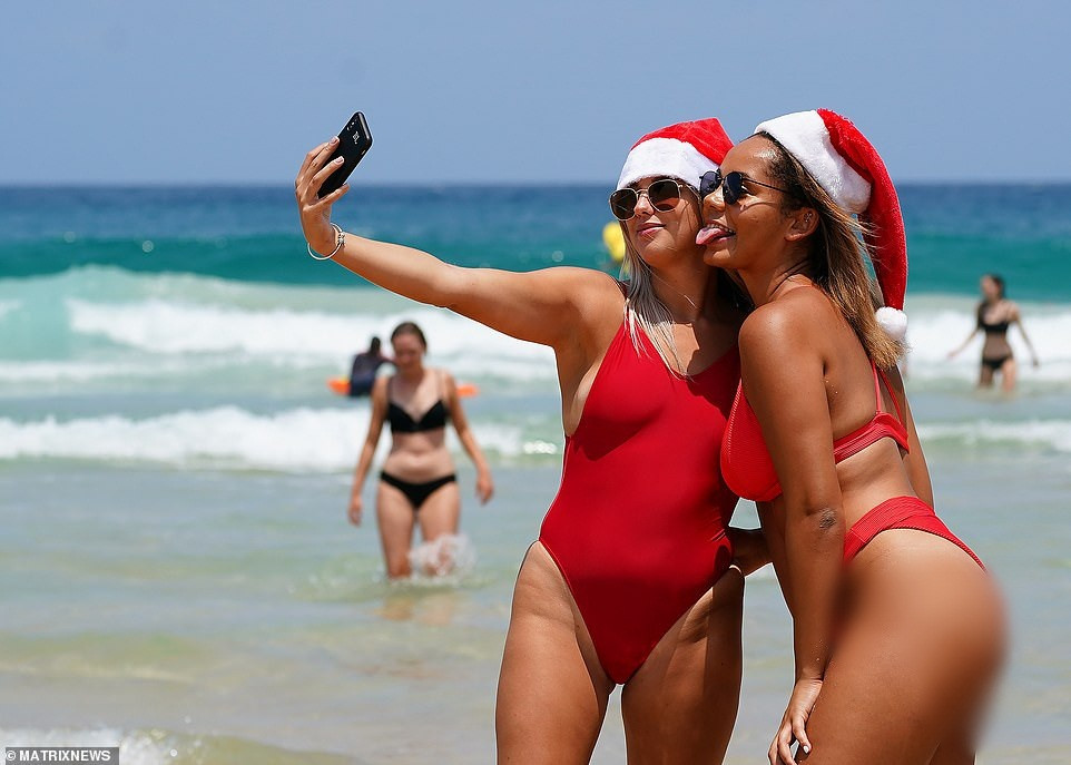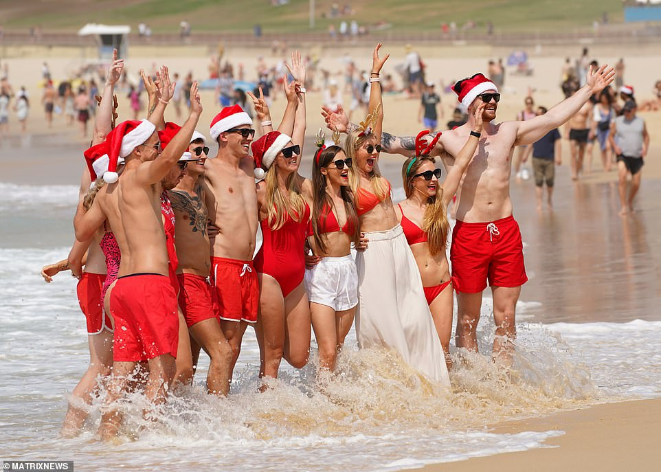 Bãi biển Bondi ở Sydney tấp nập dàn mỹ nhân diện áo tắm đỏ nóng bỏng đội mũ Noel.