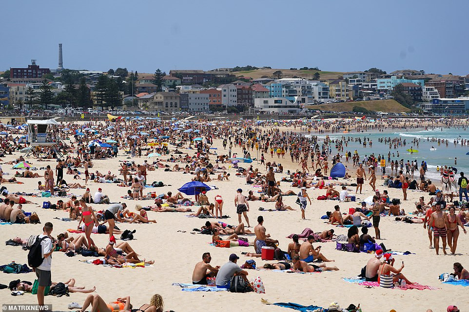 Bãi biển Bondi chật kín người dân đến tắm biển vì trời khá nóng.