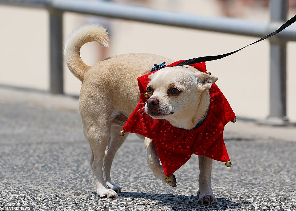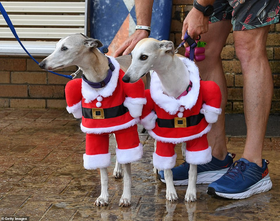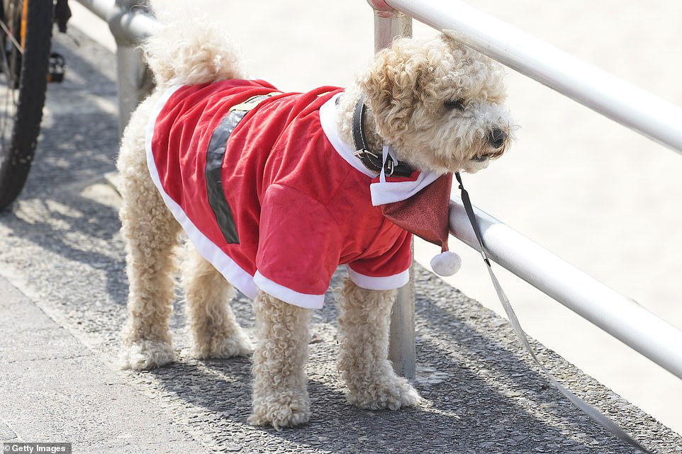 Những chú cún cưng cũng được khoác áo đỏ đón Noel.