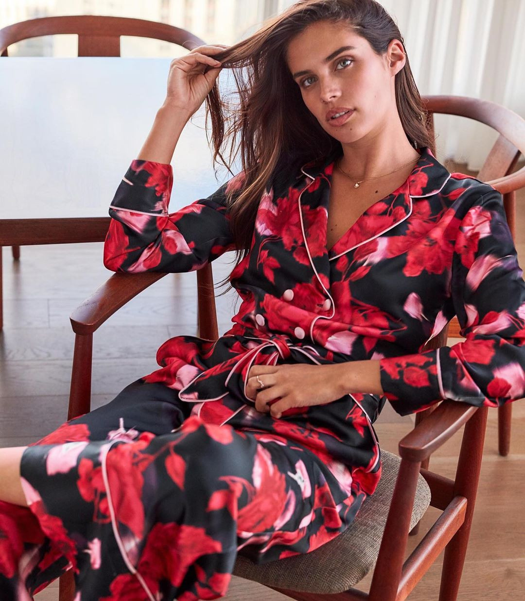 Người mẫu Mỹ Grace Elizabeth siêu gợi cảm khoác áo choàng đỏ lụa satin quyến rũ.