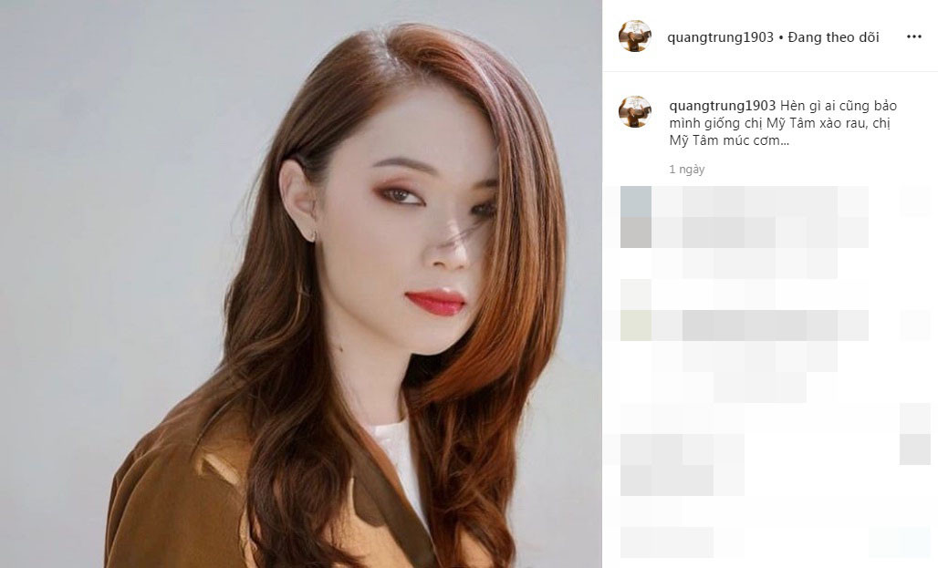 Quang Trung từng nhiều lần giả gái nên không khiến dân mạng bất ngờ nhiều. Tuy nhiên, bức ảnh này thực sự giống ca sĩ Mỹ Tâm.