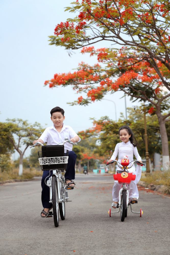 Còn nhà thiết kế Việt Hùng, người thiết kế trang phục cho 2 mẫu nhí thì “Mỗi shoot hình là một cung bậc cảm xúc, một một câu chuyện đa sắc mầu về tuổi thơ cắp sách tới trường. Với diễn xuất tự nhiên, trong trẻo của cặp mẫu nhí, bộ ảnh mang tên “Tuổi học trò”, đúng với ý tưởng về một thời học sinh ngây thơ, dại khờ, thời có những đứa bạn cùng bàn, có “em gái mưa”, có “anh trai nắng”... Và cả những khoảnh khắc đáng yêu để mơ mộng về một tương lai xa xôi”