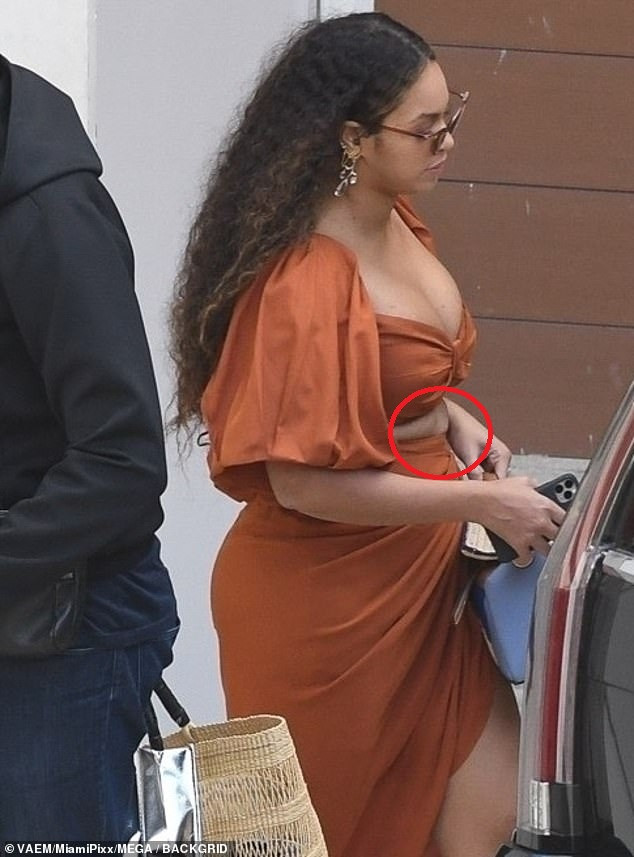 Beyonce nổi tiếng bởi vẻ đẹp đầy đặn, khoẻ mạnh. Tuy nhiên, ở tuổi U40 và qua ba lần sinh nở, nữ ca sĩ bắt đầu lộ dấu hiệu tuổi tác, cụ thể là vòng hai ngấn mỡ.
