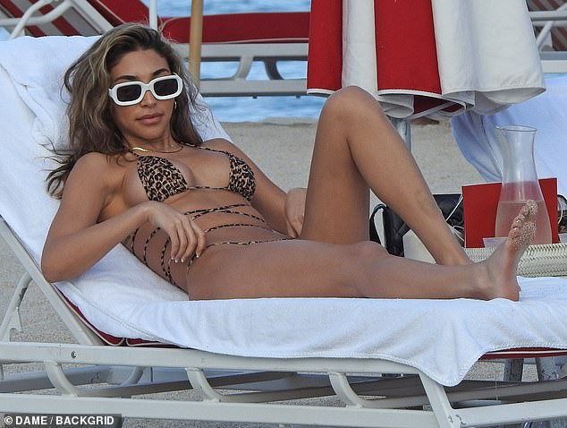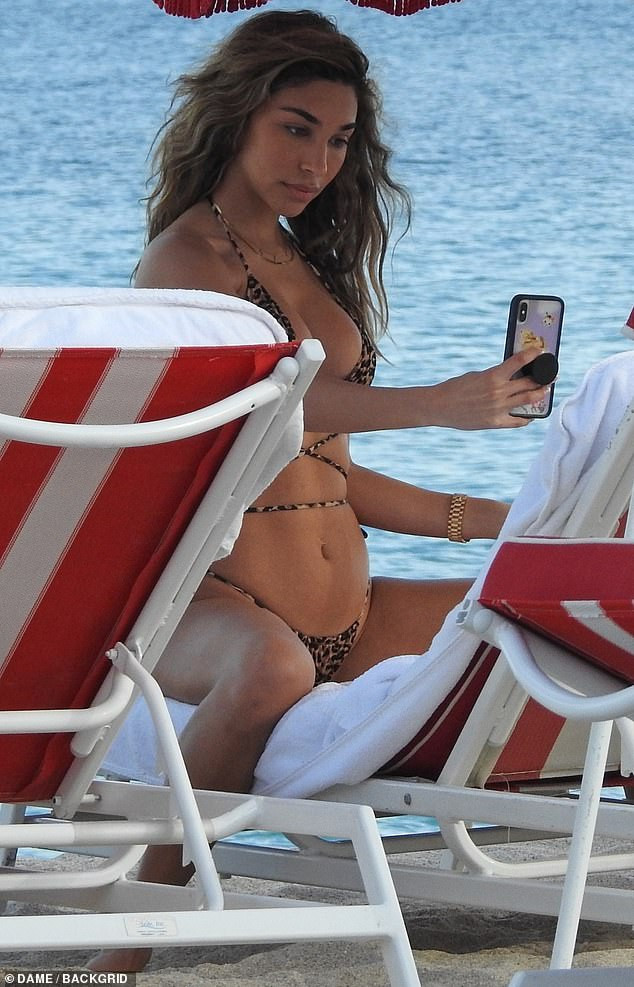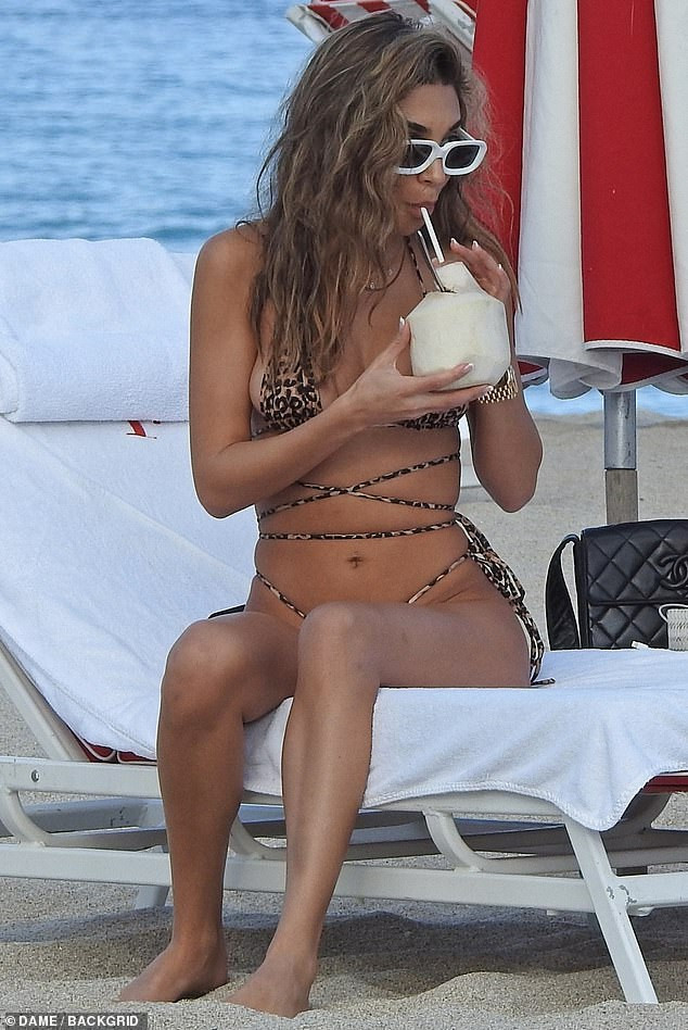 Cô chọn bộ bikini dây hoạ tiết da báo, phô diễn thân hình "đẹp từng centimet".