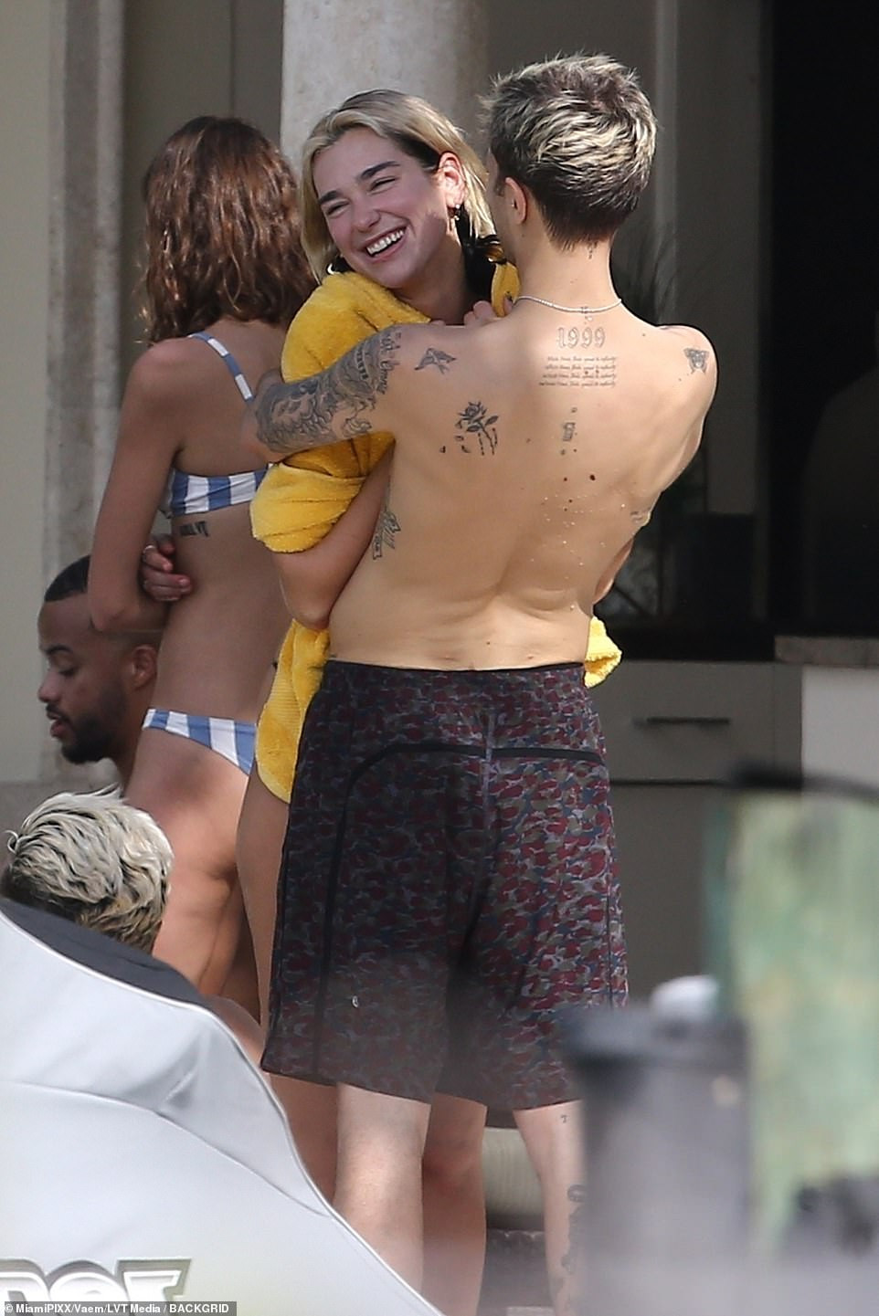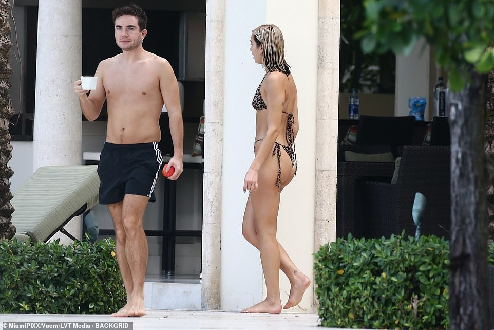 Mới đây, Dua Lipa và bạn trai Anwar Hadid được nhìn thấy tắm nắng cùng bạn bè bên hồ bơi ở thành phố biển Miami (Mỹ).