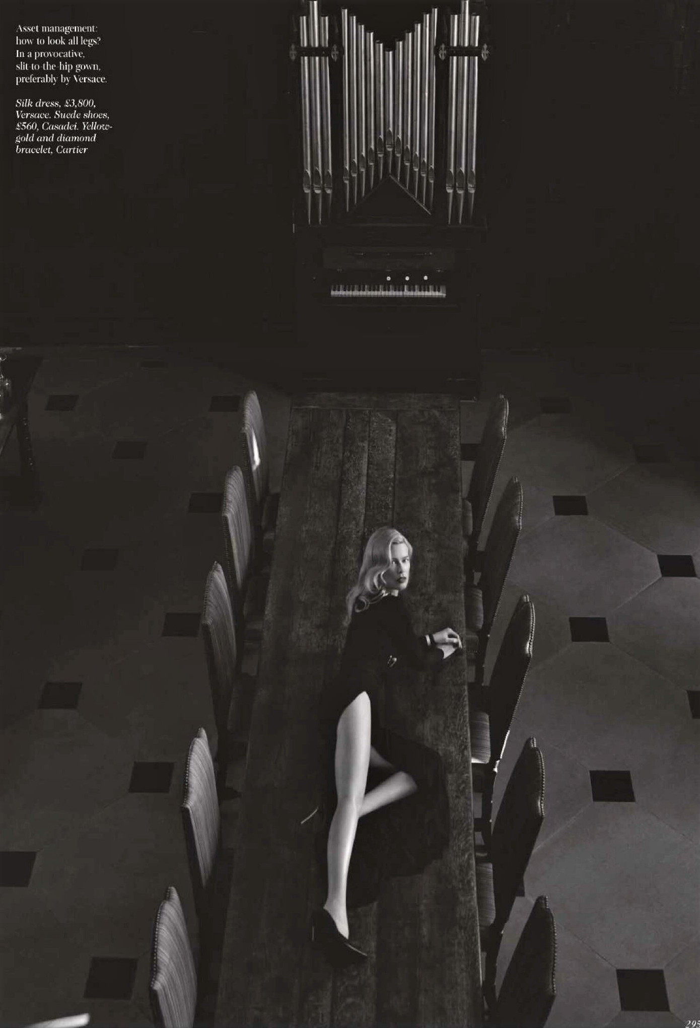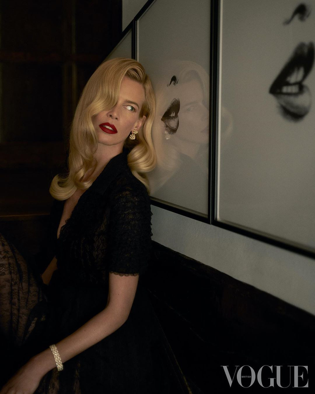 Claudia Schiffer diện đầm đen lộng lẫy yêu kiều trong bộ ảnh mới trên tạp chí Vogue Anh số tháng 9.