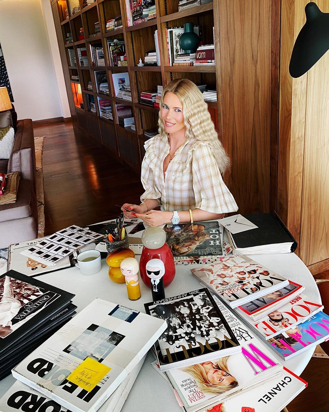 Sau nhiều thập kỷ trong làng mốt, nàng mẫu huyền thoại vẫn trung thành với kiểu tóc vàng bồng bềnh rẽ ngôi bên, toát lên thần thái sang trọng và đẳng cấp.