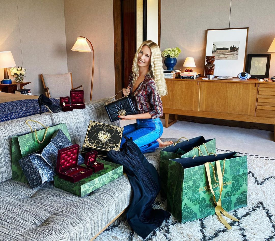 Claudia bên những món quà sinh nhật tuổi 50 do bạn bè tặng.